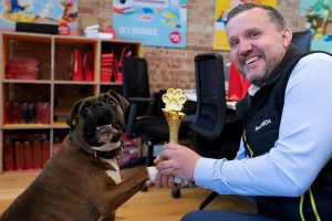 The panel, which included Carys Evans from Karis Copp Media, Colin Sinclair McDermott, the Online Print Coach, and Jack Gocher and Kathryn Ridout from Eye on Display, all agreed on the decision as the good boy adorned the Pets in Print bandana along with a branded hoodie.