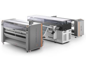 For increased productivity, the Miura Katana can be used inline with a large-format printer. When working with jumbo rolls, the system can be expanded by adding the Flexa UD 170 unwinder upstream of the printer.